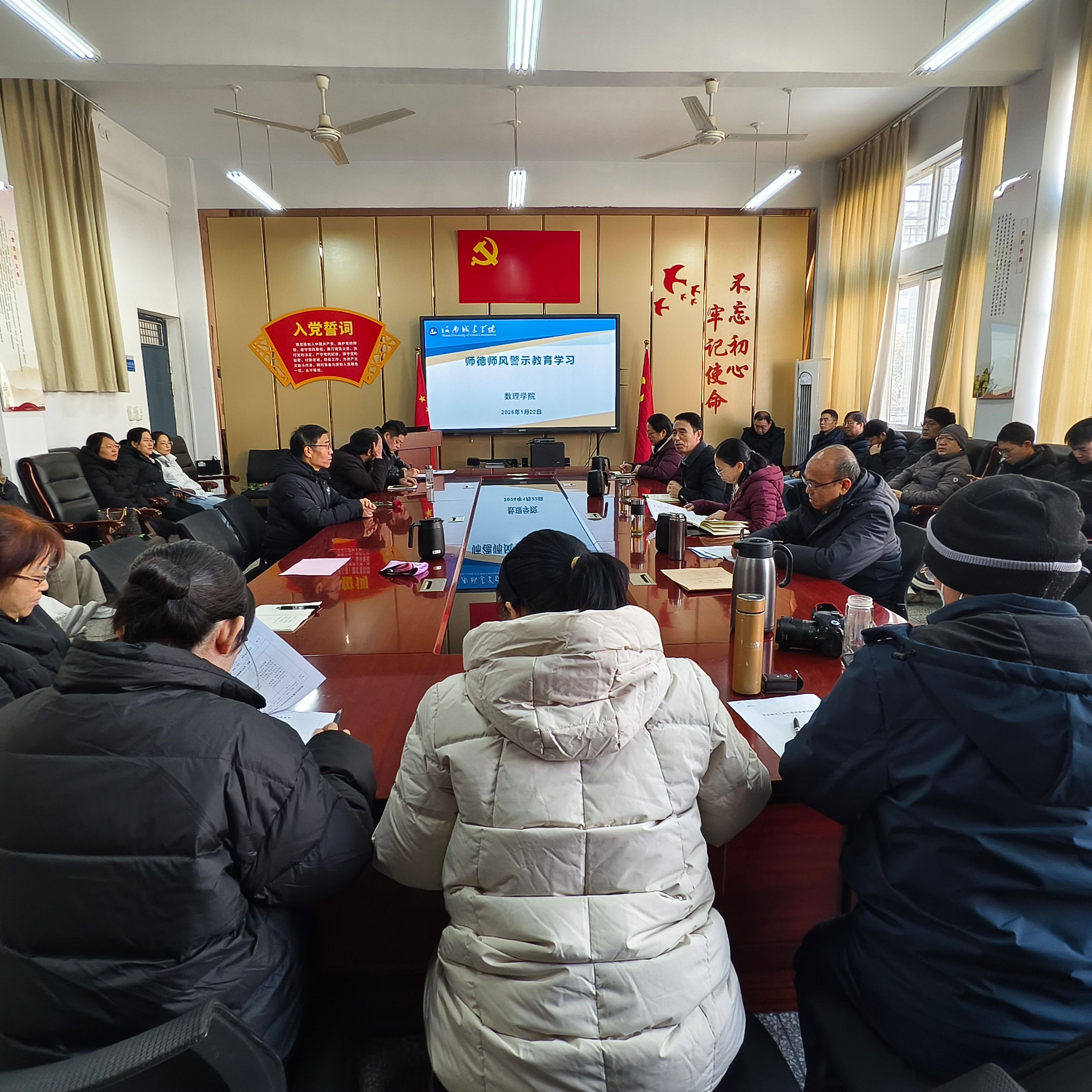 (通讯员 高明阳)为深入推进师德师风建设,强化教师廉洁从教意识,1月22日上午10点,bevictor伟德官网在公司会议室召开师德师风警示教育学习会。公司党委副书记、纪检委员王朝勇主持会议并领学相关文件,全院教职工参加会议。