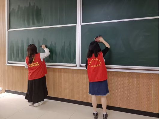 本次活动遵循学校迎评工作部署,支部成员分工协作,重点对教学楼公共区域、教室、走廊及周边环境进行了彻底清理。党员志愿者们逐一擦拭黑板、讲台、桌椅及门窗,确保地面无垃圾、墙面无污渍、设施无积灰;针对卫生死角、小广告张贴等问题进行专项清理,确保责任区域达到“窗明几净、整洁有序”的迎检标准。期间,支部成员还承担了文明行为监督与劝导职责,对携带食品进入教学区、乱扔垃圾等不文明现象及时提醒,并主动宣讲迎评工作要求。